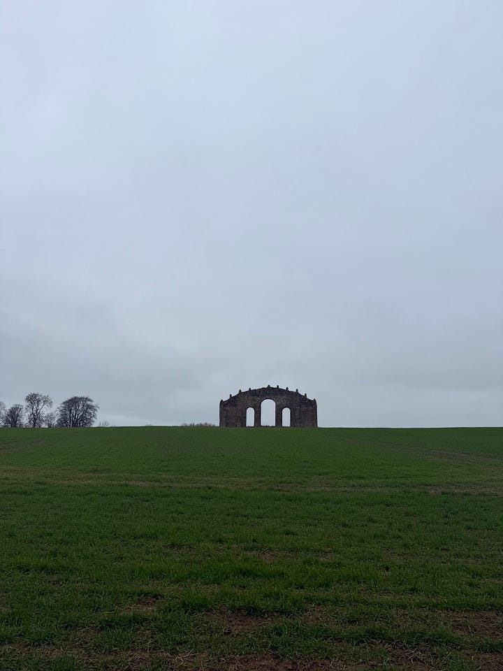 We set off down a side street, if such a thing exists in a small English village whose streets are pretty quiet to start off, making our way downhill as the way turned to a dirt farm road. We passed a brick structure called “The Eye Catcher”, which lived up to its name, and then made friends with some local cows sheltering from the chilly December day in their barn.